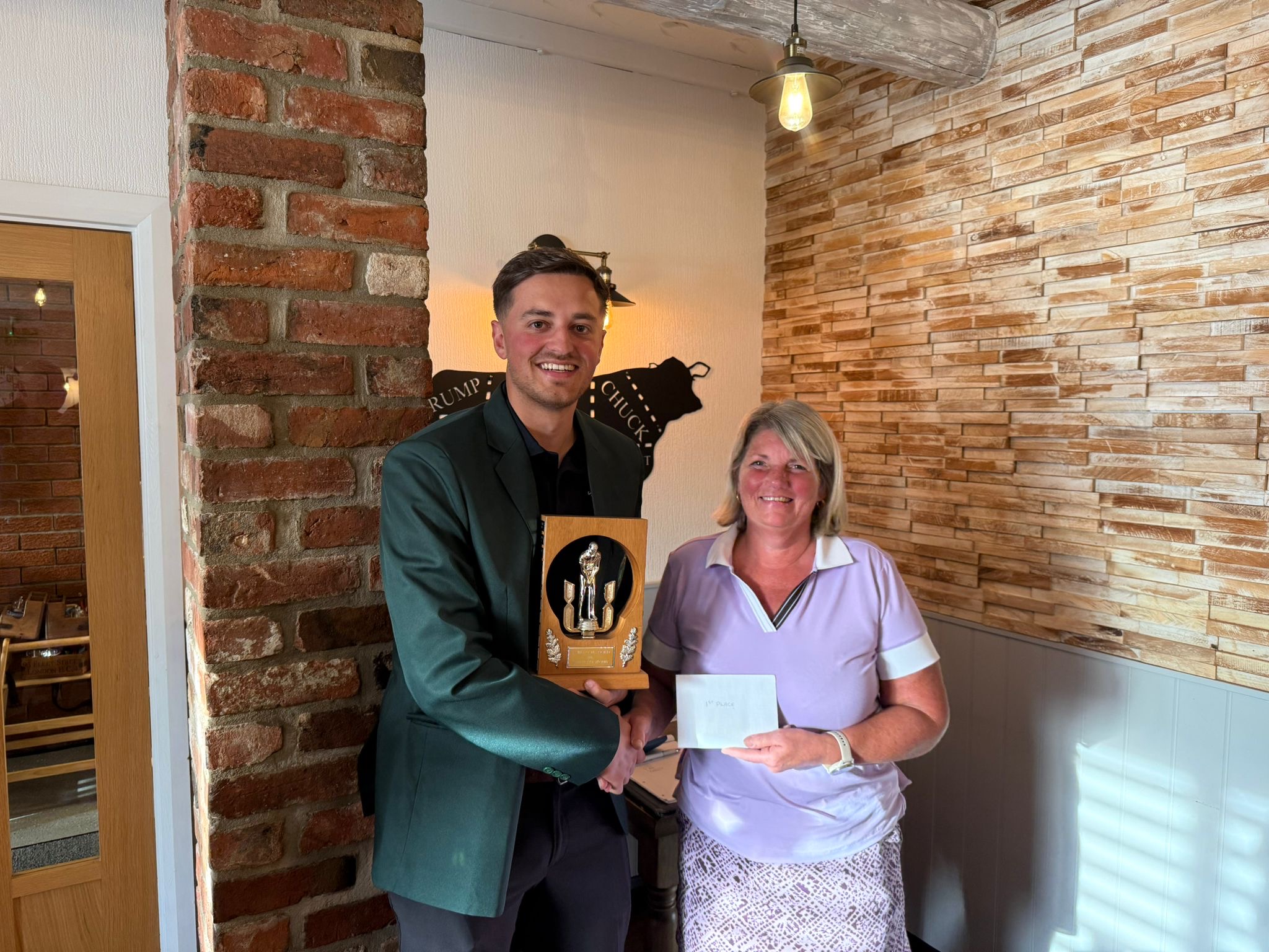 The players retreated to the Shires at Cleatham for an excellent. Chairman Graham Flint precided over the fines before VC Steve and Sponsor Sue presented the prizes to the days successful golfers.